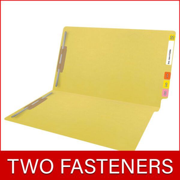 14 pt Color Folders, Full Cut 2-Ply End Tab, Legal Size, 2 Fasteners in Pos #1 & #3, Yellow (Box of 50)