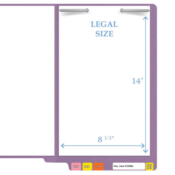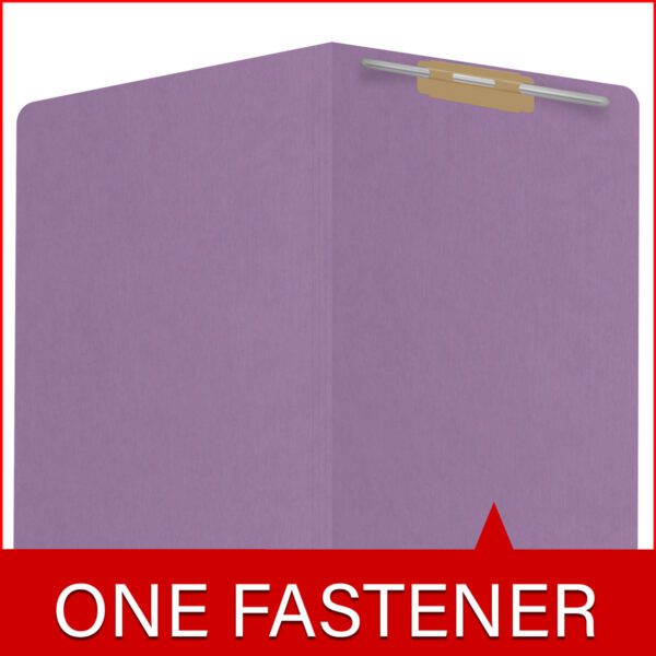 These lavender legal size color folders can be used to categorize your documents and are easily found on your shelves. The 14 pt lavender heavy duty color stock will last longer than standard 11 pt stock. This folder also includes a reinforced, or 2 ply end tab for even additional durability. This full cut end tab, with scored label placement marks, will provide a location to add end tab color filing labels that will be easily visible in shelf filing systems. THESE FOLDERS WILL NOT FIT IN FILE DRAWERS. The bottom of this folder is scored to be easily folded to provide up to 3/4″ expansion. This folder includes a heat bonded fasteners which keeps the front and back of the folder from catching in clothing, documents, or even fingernails and cuticles. These folders contain 10% recycled content with 10% post-consumer material.