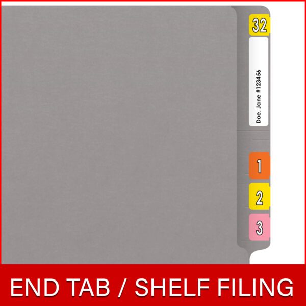 - This grey file folder has a full cut reinforced end tab for shelf filing. THIS FOLDER WILL NOT FIT IN A FILE DRAWER.