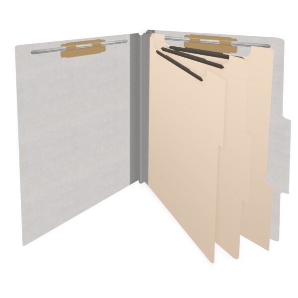 These top tab classification folders are designed to file in desks or cabinets with pull-out drawers. They are made of sturdy 18 pt. paper stock folders also feature three 18 pt manila divider with two bonded fasteners for increased life and durability. Each folder comes with multiple filing sections to help you easily sub-divide your documents for better organization.