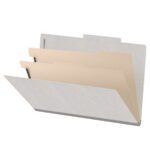These top tab classification folders are designed to file in desks or cabinets with pull-out drawers. They are made of sturdy 18 pt color stock for increased life and durability. Each folder comes with multiple filing sections to help you easily sub-divide your documents for better organization.