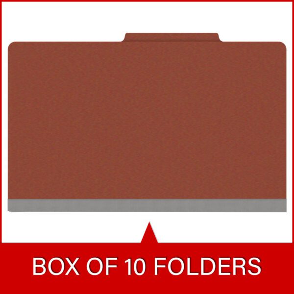 25 Pt. Pressboard Classification Folders, 2/5 Cut ROC Top Tab, Legal Size, 1 Divider, Brick Red (Box of 10)