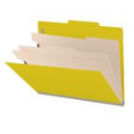 These top tab classification folders are designed to file in desks or cabinets with pull-out drawers. They are made of sturdy 25 pt.pressboard for increased life and durability. Each folder comes with multiple filing sections to help you easily sub-divide your documents for better organization.