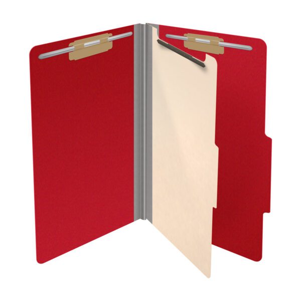 25 Pt. Pressboard Classification Folders, 2/5 Cut ROC Top Tab, Legal Size, 1 Divider, Red (Box of 10)