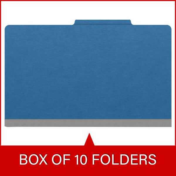 25 Pt. Pressboard Classification Folders, 2/5 Cut ROC Top Tab, Legal Size, 2 Dividers, Blue (Box of 10)