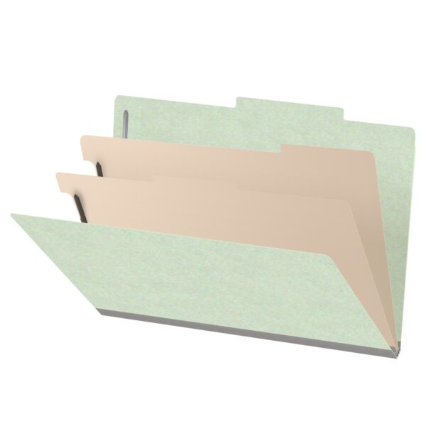 25 Pt. Pressboard Classification Folders, 2/5 Cut ROC Top Tab, Legal Size, 2 Dividers, Pale Green (Box of 10)