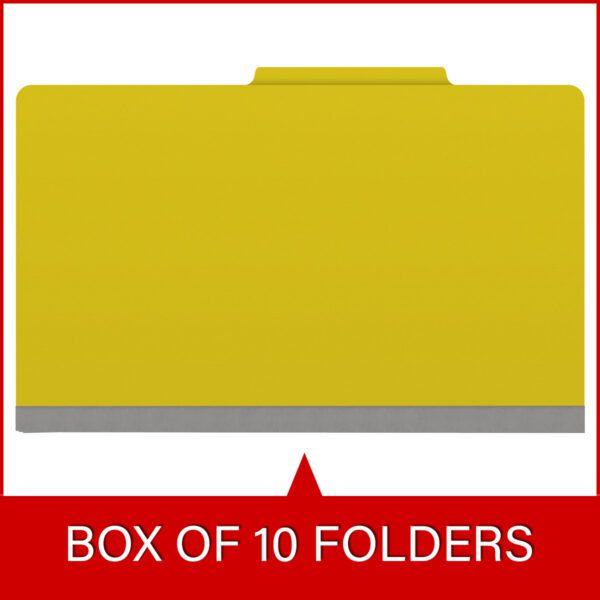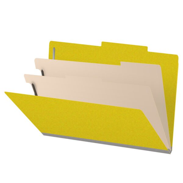 25 Pt. Pressboard Classification Folders, 2/5 Cut ROC Top Tab, Legal Size, 2 Dividers, Yellow (Box of 10)