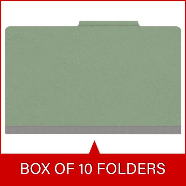 25 Pt. Pressboard Classification Folders, 2/5 Cut ROC Top Tab, Legal Size, 3 Dividers, Green (Box of 10)
