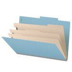 These top tab classification folders are designed to file in desks or cabinets with pull-out drawers. They are made of sturdy 25 pt.pressboard for increased life and durability. Each folder comes with multiple filing sections to help you easily sub-divide your documents for better organization.
