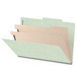 These top tab classification folders are designed to file in desks or cabinets with pull-out drawers. They are made of sturdy 25 pt.pressboard for increased life and durability. Each folder comes with multiple filing sections to help you easily sub-divide your documents for better organization.