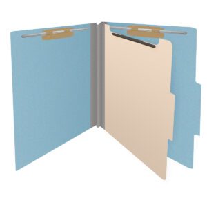 - This folder is made of 25 pt light blue pressboard stock and has one 18 pt manila dividers with duo fasteners.