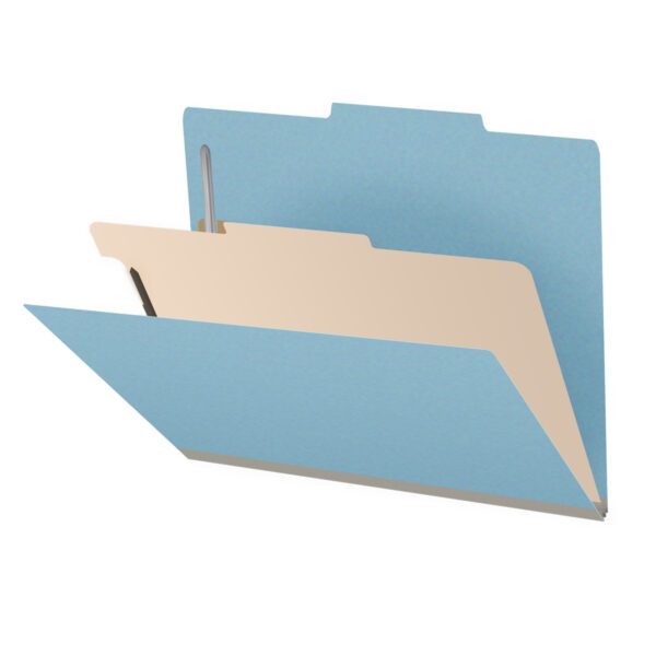 25 Pt. Pressboard Classification Folders, 2/5 Cut ROC Top Tab, Letter Size, 1 Divider, Light Blue (Box of 10)