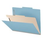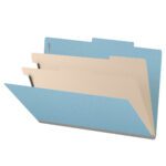 These top tab classification folders are designed to file in desks or cabinets with pull-out drawers. They are made of sturdy 25 pt. pressboard for increased life and durability. Each folder comes with multiple filing sections to help you easily sub-divide your documents for better organization.