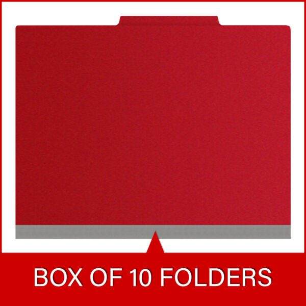 25 Pt. Pressboard Classification Folders, 2/5 Cut ROC Top Tab, Letter Size, 1 Divider, Red (Box of 10)