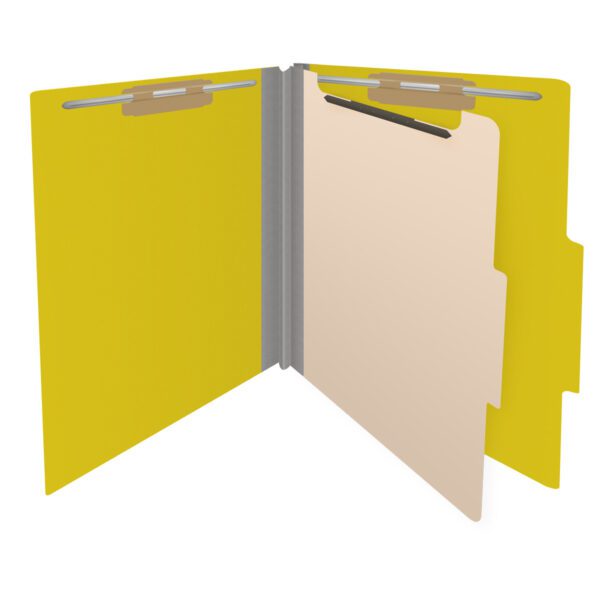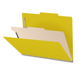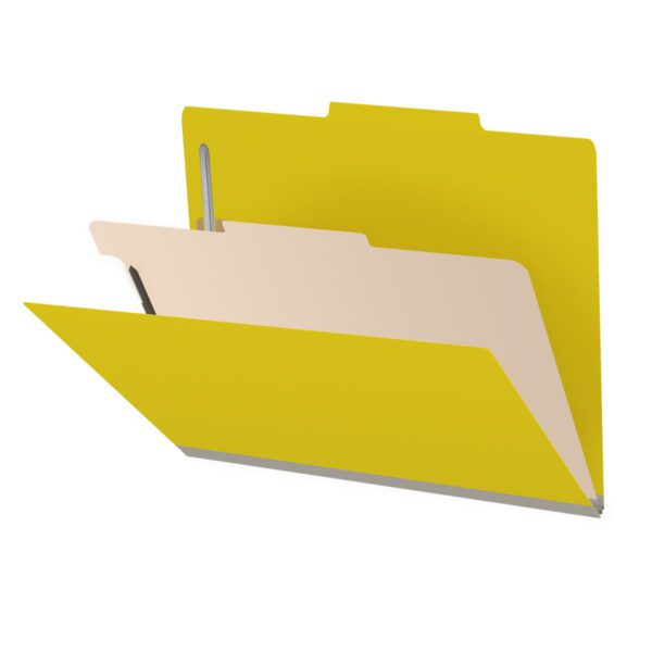 25 Pt. Pressboard Classification Folders, 2/5 Cut ROC Top Tab, Letter Size, 1 Divider, Yellow (Box of 10)
