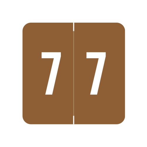 These are Acme compatible number “7” labels. Each label wraps around the end of a file folder to label that folder for numerical filing. They feature a wrap-around solid brown color bar with a solid white number “7”. The number “7” will be visible on each side of the folder when applied. Each label is 1-1/2″ wide and 1-1/2″ high. Labels are laminated and sold in rolls of 500.