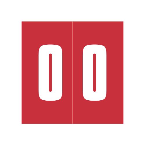 These are Ames compatible number “0” labels. Each label wraps around the end of a file folder to label that folder for numerical filing. They feature a wrap-around solid color bar with a solid white number “0”. The number “0” will be visible on each side of the folder when applied. Each label is 1-7/8″ wide and 1-7/8″ high. Labels are laminated and sold in rolls of 500.