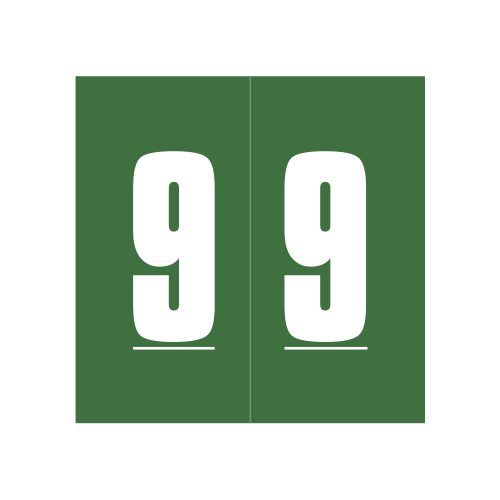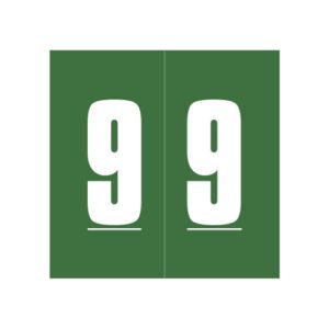 These are Ames compatible number “9” labels. Each label wraps around the end of a file folder to label that folder for numerical filing. They feature a wrap-around solid color bar with a solid white number “9”. The number “9” will be visible on each side of the folder when applied. Each label is 1-7/8″ wide and 1-7/8″ high. Labels are unlaminated and sold in roll of 1000.