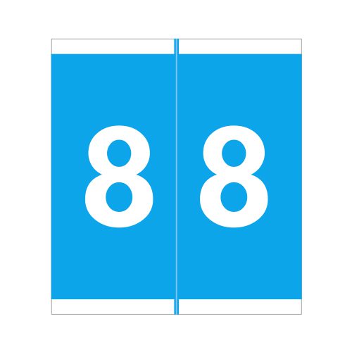 These are Barkley AVNM compatible “8” numeric labels. Each label wraps around the end of a file folder to label that folder for numerical filing. They feature a wrap-around solid color bar with a solid white “8”. The “8” will be visible on each side of the folder when applied. Each label is 1-1/2″ wide and 1-11/16″ high. Labels are laminated and sold in rolls of 500.