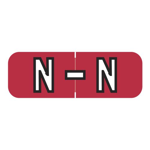 These are Barkley FABAM Compatible Letter “N” Alpha Labels. Each label wraps around the end of a file folder to label that folder for alphabetical filing. These labels are solid red with a double white letter “N” character. The “N” will be visible on each side of the folder when applied. Each label is 1/2″ Wide x 1-1/2″ high. Labels are laminated and sold in roll of 500.