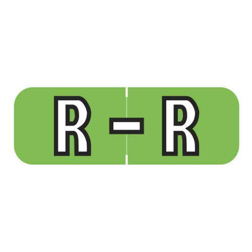 These are Barkley FABAM Compatible Letter “R” Alpha Labels. Each label wraps around the end of a file folder to label that folder for alphabetical filing. These labels are solid light green with a double white letter “R” character. The “R” will be visible on each side of the folder when applied. Each label is 1/2″ Wide x 1-1/2″ high. Labels are laminated and sold in roll of 500.