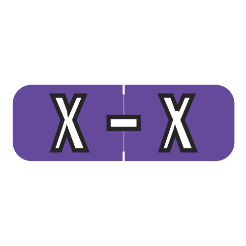 These are Barkley FABAM Compatible Letter “X” Alpha Labels. Each label wraps around the end of a file folder to label that folder for alphabetical filing. These labels are solid purple with a double white letter “X” character. The “X” will be visible on each side of the folder when applied. Each label is 1/2″ Wide x 1-1/2″ high. Labels are laminated and sold in roll of 500.