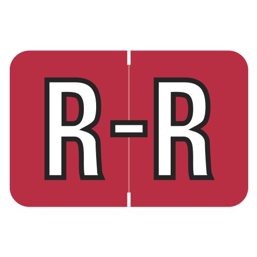 These are Barkley FABEM Compatible Letter “R” Alpha Labels. Each label wraps around the end of a file folder to label that folder for alphabetical filing. These labels are solid red with a double white letter “R” character. The “R” will be visible on each side of the folder when applied. Each label is 1″ Wide x 1-1/2″ high. Labels are laminated and sold in roll of 500.