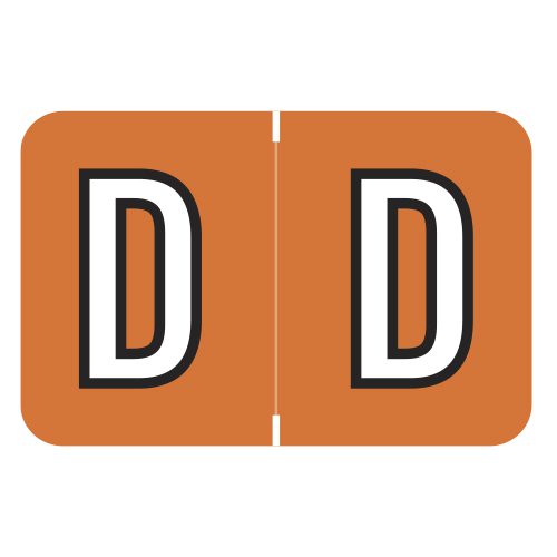 These are Barkley FABKM Compatible Letter “D” Alpha Labels. Each label wraps around the end of a file folder to label that folder for alphabetical filing. These labels are solid dark orange with a double white letter “D” character. The “D” will be visible on each side of the folder when applied. Each label is 1″ Wide x 1-1/2″ high. Labels are laminated and sold in Pack of 225.