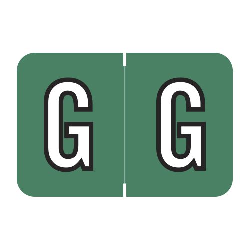 These are Barkley FACPM Compatible Letter “G” Alpha Labels. Each label wraps around the end of a file folder to label that folder for alphabetical filing. These labels are solid dark green with a double white letter “G” character. The “G” will be visible on each side of the folder when applied. Each label is 1″ Wide x 1-1/2″ high. Labels are laminated and sold in roll of 500.