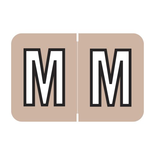 These are Barkley FACPM Compatible Letter “M” Alpha Labels. Each label wraps around the end of a file folder to label that folder for alphabetical filing. These labels are solid tan with a double white letter “M” character. The “M” will be visible on each side of the folder when applied. Each label is 1″ Wide x 1-1/2″ high. Labels are laminated and sold in roll of 500.