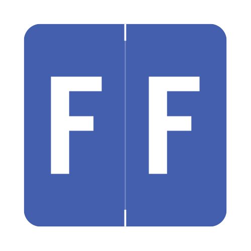 These are Barkley FADBM Compatible Letter “F” Alpha Labels. Each label wraps around the end of a file folder to label that folder for alphabetical filing. These labels are solid dark blue with a double white letter “F” character. The “F” will be visible on each side of the the folder when applied. Each label is 1-1/2″ Wide x 1-1/2″ high. Labels are laminated and sold in pack of 228.