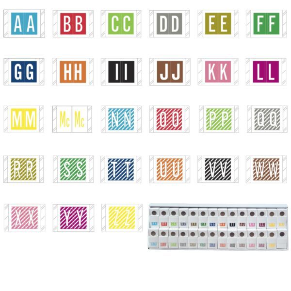 These are Barkley FASTM Compatible Alpha Labels. Each label wraps around the end of a file folder to label that folder for alphabetical filing. These labels are solid color with a double white letter character. It will be visible on each side of the folder when applied. Each label is 1″ Wide x 1-1/2″ high. Labels are laminated and sold in 27 rolls of 500.