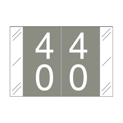 These are Barkley FDSTM compatible “40” numeric labels. Each label wraps around the end of a file folder to label that folder for numerical filing. They feature a wrap-around solid grey color bar with a solid white “40”. The “40” will be visible on each side of the folder when applied. Each label is 1-1/2″ wide and 1″ high. Labels are laminated and sold in rolls of 500.