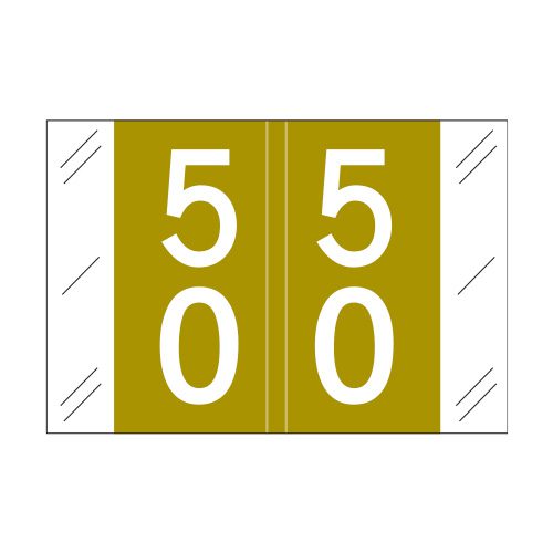 These are Barkley FDSTM compatible “50” numeric labels. Each label wraps around the end of a file folder to label that folder for numerical filing. They feature a wrap-around solid gold color bar with a solid white “50”. The “50” will be visible on each side of the folder when applied. Each label is 1-1/2″ wide and 1″ high. Labels are laminated and sold in rolls of 500.