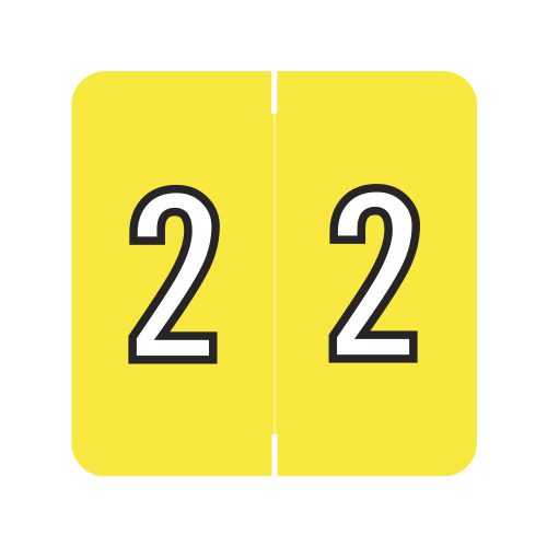 These are Barkley FNBRM compatible “2” numeric labels. Each label wraps around the end of a file folder to label that folder for numerical filing. They feature a wrap-around yellow color bar with a solid white “2”. The “2” will be visible on each side of the folder when applied. Each label is 1-1/2″ wide and 1-1/2″ high. Labels are laminated and sold in rolls of 500.