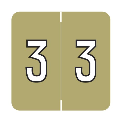 These are Barkley FNDBM compatible “3” numeric labels. Each label wraps around the end of a file folder to label that folder for numerical filing. They feature a wrap-around solid gold color bar with a solid white “3”. The “3” will be visible on each side of the folder when applied. Each label is 1-1/2″ wide and 1″ high. Labels are laminated and sold in rolls of 500.