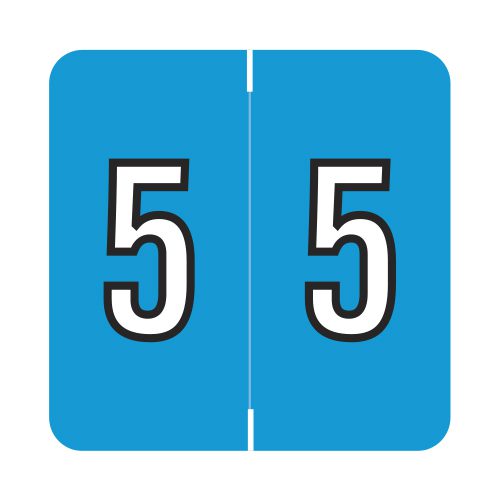 These are Barkley FNDBM compatible “5” numeric labels. Each label wraps around the end of a file folder to label that folder for numerical filing. They feature a wrap-around solid blue color bar with a solid white “5”. The “5” will be visible on each side of the folder when applied. Each label is 1-1/2″ wide and 1″ high. Labels are laminated and sold in rolls of 500.