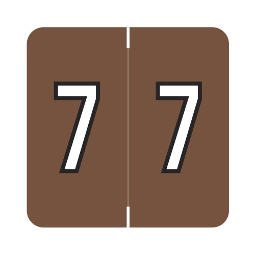 These are Barkley FNDBM compatible “7” numeric labels. Each label wraps around the end of a file folder to label that folder for numerical filing. They feature a wrap-around solid brown color bar with a solid white “7”. The “7” will be visible on each side of the folder when applied. Each label is 1-1/2″ wide and 1″ high. Labels are laminated and sold in rolls of 500.