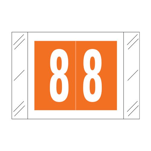 These are Barkley FNSTM compatible “8” numeric labels. Each label wraps around the end of a file folder to label that folder for numerical filing. They feature a wrap-around solid orange color bar with a solid white “8”. The “8” will be visible on each side of the folder when applied. Each label is 1-1/2″ wide and 1″ high. Labels are laminated and sold in rolls of 500.