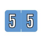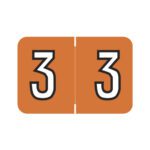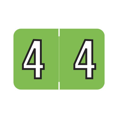 These are Barkley NBKM compatible number “4” labels. Each label wraps around the end of a file folder to label that folder for numerical filing. They feature a wrap-around solid solor bar with a solid white “4” outlined in black. The number “4” will be visible on each side of the folder when applied. Each label is 1-1/2″ wide and 1″ high. Labels are laminated and sold in rolls of 500.