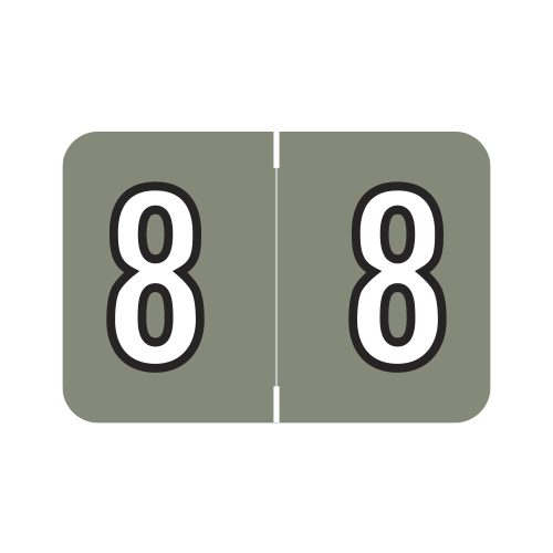 These are Barkley NBKM compatible number “8” labels. Each label wraps around the end of a file folder to label that folder for numerical filing. They feature a wrap-around solid solor bar with a solid white “8” outlined in black. The number “8” will be visible on each side of the folder when applied. Each label is 1-1/2″ wide and 1″ high. Labels are laminated and sold in rolls of 500.