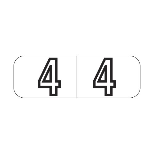 These are Barkley NBWM compatible mini number “4” labels. Each label wraps around the end of a file folder to label that folder for numerical filing. They feature a numeric “4” outlined in black on a white background. The “4” will be visible on each side of the folder when applied. Each label is 1-1/2″ wide and 1/2″ high. Labels are laminated and sold in rolls of 500.