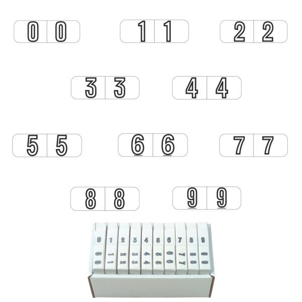 These are Barkley NBWM compatible mini numeric labels. Each label wraps around the end of a file folder to label that folder for numerical filing. They feature numeric characters outlined in black on a white background. The number will be visible on each side of the folder when applied. Each label is 1-1/2″ wide and 1/2″ high. Labels are laminated and sold in 10 rolls of 500.