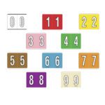 These are Barkley NCPM compatible numeric labels. Each label wraps around the end of a file folder to label that folder for numerical filing. They feature a wrap-around solid color bar with a solid white number outlined in black. The number will be visible on each side of the folder when applied. Each label is 1-1/2″ wide and 1″ high. Labels are laminated and sold in rolls of 500.
