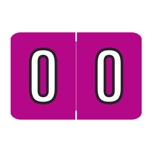 These are Barkley NCPM compatible number “0” labels. Each label wraps around the end of a file folder to label that folder for numerical filing. They feature a wrap-around solid dark pink color bar with a solid white “0” outlined in black. The number “0” will be visible on each side of the folder when applied. Each label is 1-1/2″ wide and 1″ high. Labels are laminated and sold in rolls of 500.