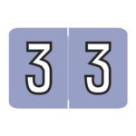 These are Barkley NCPM compatible number “2” labels. Each label wraps around the end of a file folder to label that folder for numerical filing. They feature a wrap-around solid purple color bar with a solid white “2” outlined in black. The number “2” will be visible on each side of the folder when applied. Each label is 1-1/2″ wide and 1″ high. Labels are laminated and sold in rolls of 500.