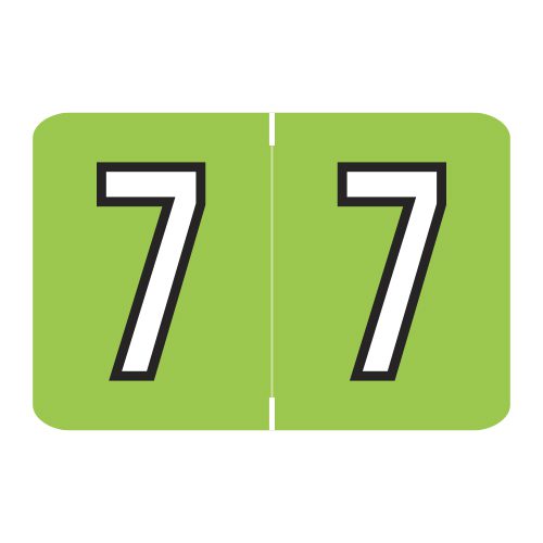 These are Barkley NCPM compatible number “7” labels. Each label wraps around the end of a file folder to label that folder for numerical filing. They feature a wrap-around solid light green color bar with a solid white “7” outlined in black. The number “7” will be visible on each side of the folder when applied. Each label is 1-1/2″ wide and 1″ high. Labels are laminated and sold in rolls of 500.