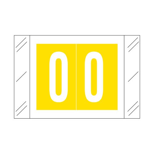 These are Col’R’Tab compatible number “0” labels. Each label wraps around the end of a file folder to label that folder for numerical filing. They feature a wrap-around solid yellow color bar with a solid white “0”. The number “0” will be visible on each side of the folder when applied. Each label is 1-1/2″ wide and 1″ high. Labels are laminated and sold in rolls of 500.