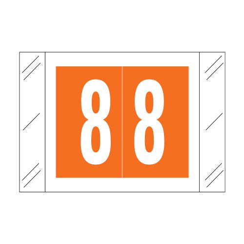 These are Col’R’Tab compatible number “8” labels. Each label wraps around the end of a file folder to label that folder for numerical filing. They feature a wrap-around solid orange color bar with a solid white “8”. The number “8” will be visible on each side of the folder when applied. Each label is 1-1/2″ wide and 1″ high. Labels are laminated and sold in rolls of 500.
