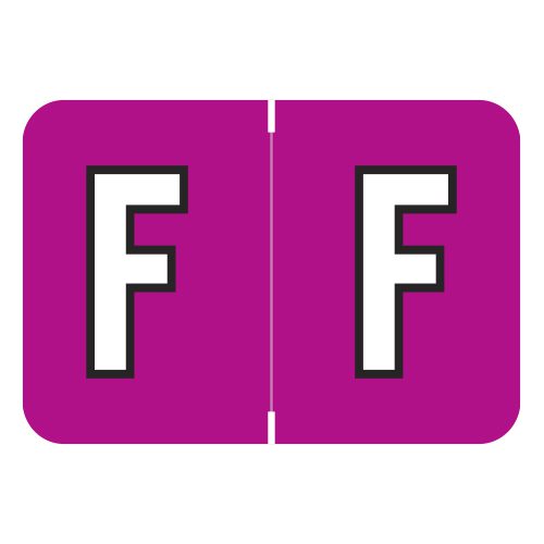 These are Colwell Jewel Tone Letter “F” Alpha Labels. Each label wraps around the end of a file folder to label that folder for alphabetical filing. These labels are solid dark pink with a double white letter “F” character. The “F” will be visible on each side of the folder when applied. Each label is 1″ Wide x 1-1/2″ high. Labels are laminated and sold in roll of 500.